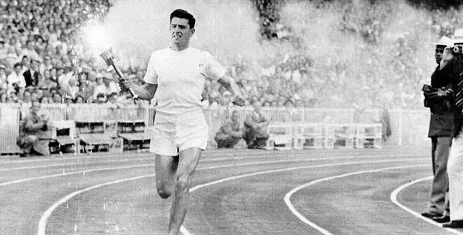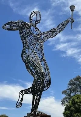 Ron Clarke carrying the torch and lighting the flame at the 1956 Melbourne Olympics is celebrated by the statue “The Torch Bearer” at Dolamore Mentone Track and Field Centre